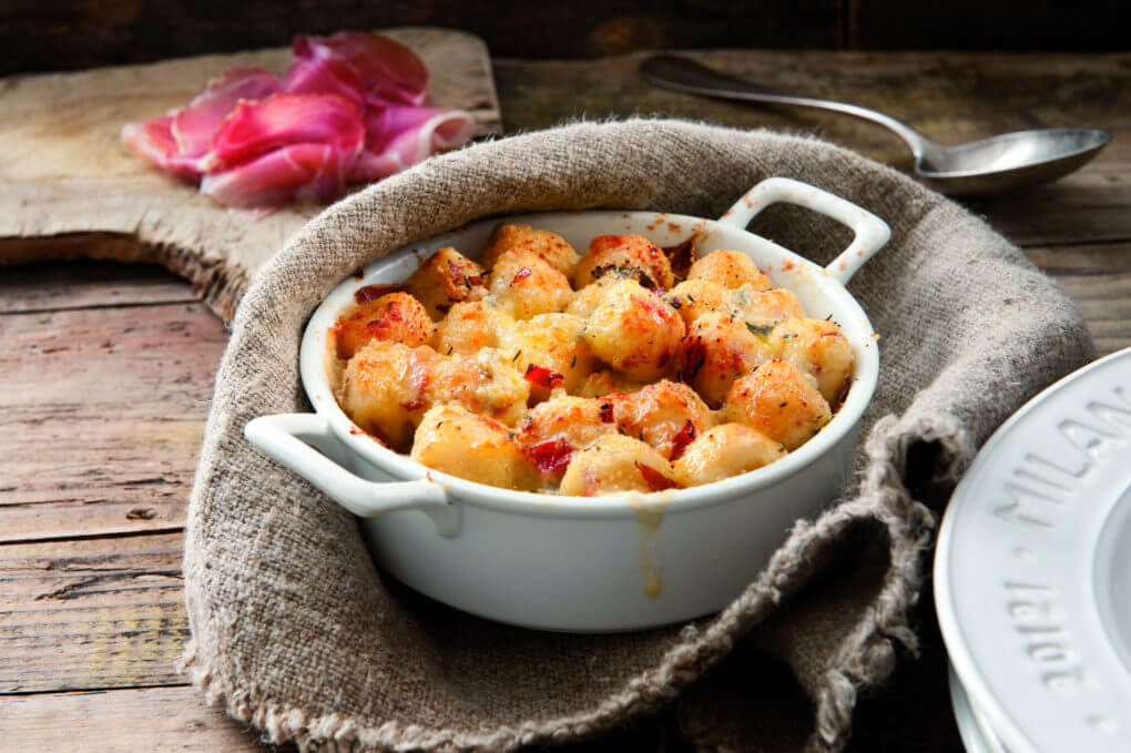 - Oszd szét a gnocchit 4 tűzálló edénybe, szórd rájuk a megmaradt, felkockázott Gorgonzola sajtot, a tetejükre tegyél néhány kis vajdarabot, reszelt sajtot, és süsd pár percig, amíg aranysárga lesz.
