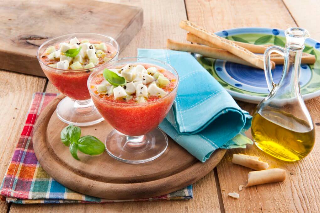 - Öntsd az elkészült gazpachót 4 koktélos pohárba (a keverék folyékony legyen, de elég sűrű).