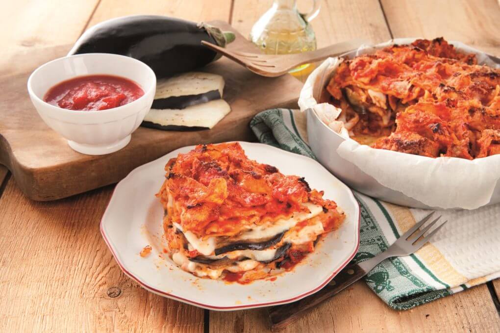 7. Vajazz ki egy téglalapalakú, tapadásmentes (Pyrex) sütőtálat, és váltakozva rétegezd bele a tésztát, a padlizsánszeleteket, a Mozzarellát és a bazsalikomot. Addig ismételd a rétegezést, amíg a hozzávalók elfogynak.