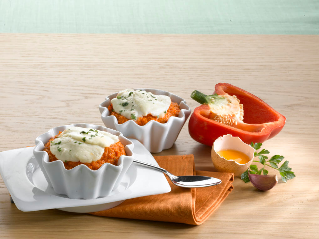 - A piros paprikát süsd 180°C-on 10 percig, tedd át egy tálkába, és takard le átlátszó fóliával újabb 10 percre. Óvatosan bánj vele, amíg forró, nehogy megégesd a kezedet. Hámozd meg a paprikát, távolítsd el a magjait, és egy kis időre tedd félre.